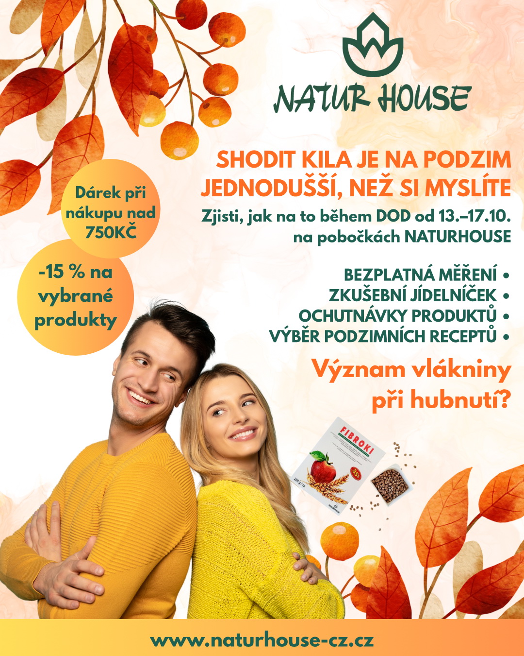 Přijďte na Dny otevřených dveří v NATURHOUSE od 13. do 17. října a zjistěte, jak snadno může začít vaše podzimní proměna.