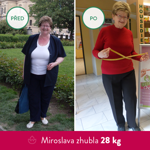 Paní Miroslava Schlosserová byla štíhlá až do svého těhotenství. Poté se již svých nadbytečných kil nedokázala zbavit vlastními silami. Různými dietami dospěla nejen k váze nad 100 kg, ale také k diabetu. Jenže život nekončí v 70 letech a tak se svěřila do odborných rukou výživové poradkyně Markéty Dočkalové z NATURHOUSE v Kroměříži. Po 8 měsících zhubla 27,5 kg, zeštíhlela v pase o 23 cm a může si vybírat z krásného oblečení v konfekční velikosti 44–46. A nejen to, místo 4 dávek inzulínu denně si píchá pouze 1.